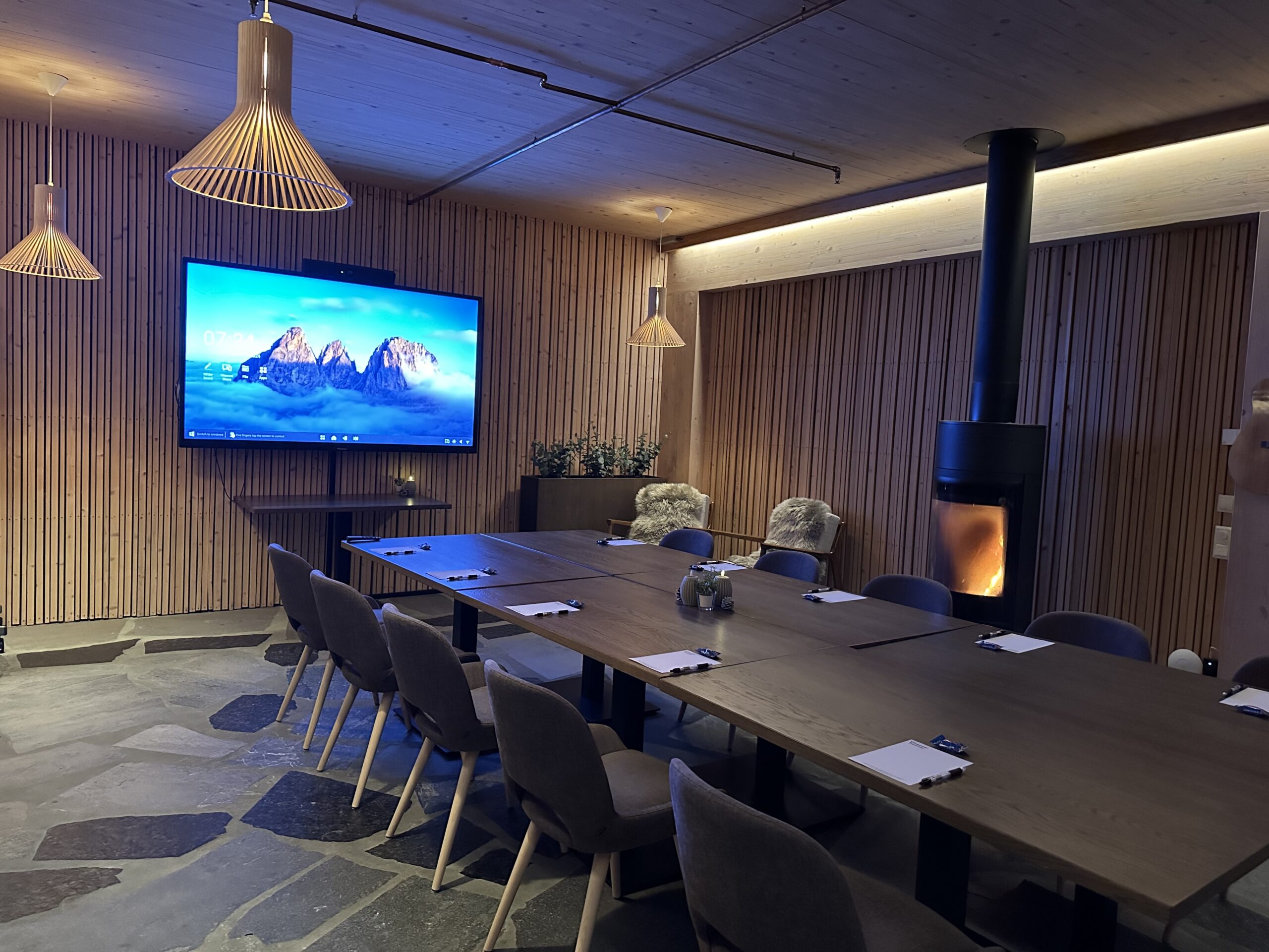 Møterommet ligger like innenfor restauranten som betyr at det er kort vei til og fra måltidene. Peisestua har nydelig utsikt over Refsvatnet og fjellene rundt og er utstyrt med solskjerming og gardiner for lukkede møter. Møterommet har moderne AV- utstyr som stor flatskjerm, tilkobling via Bluetooth eller HDMI kabel, samt kamera og lydutstyr