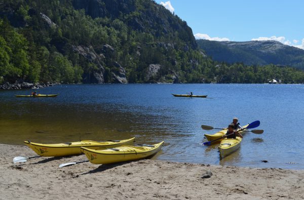 Preikestolen BaseCamps enmannskajakker lar gjester raskt og enkelt navigere rundt omkring på Revsvatnet. Redningsvester (PFD) og padleårer er inkludert i leieprisen, og deles ut på vårt Adventure Center.